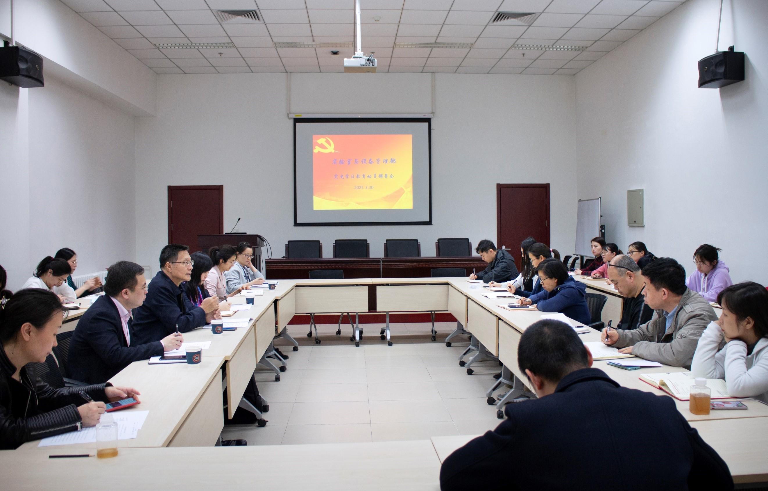 3月30日,实验室与设备管理部党支部(以下简称“设备部党支部”)在勺园五乙303会议室召开党史学习教育动员部署暨2020年度组织生活会,学习贯彻习近平总书记在中央党史学习教育动员大会上的重要讲话精神,根据学校党委整体部署、机关党委《党史学习教育实施方案》要求,对设备部开展党史学习教育相关工作进行了部署,并按照组织程序召开了2020年度组织生活会,对过去一年的党建工作进行了总结、梳理和考核,以及对全体党员按照个人自评、党员互评、民主测评等程序进行了民主评议。会议由设备部党支部书记周勇义主持。