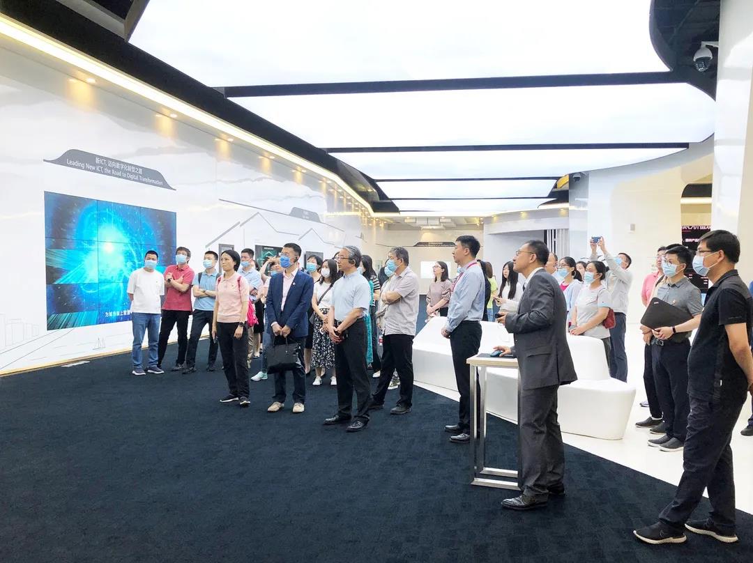 首先,大家一同参观了华为北京会展中心。展区坐落于海淀区中关村环保科技示范园,占地面积约70000平方米,是华为最大的全球展厅。机关党员群众在这里了解了华为开拓海外市场的发展历程,观看了5G、AI等前沿技术演示,体验了超高清16K的显示幕墙、远程高清会议室,切身感受了自主创新技术给社会带来的变化和便利。