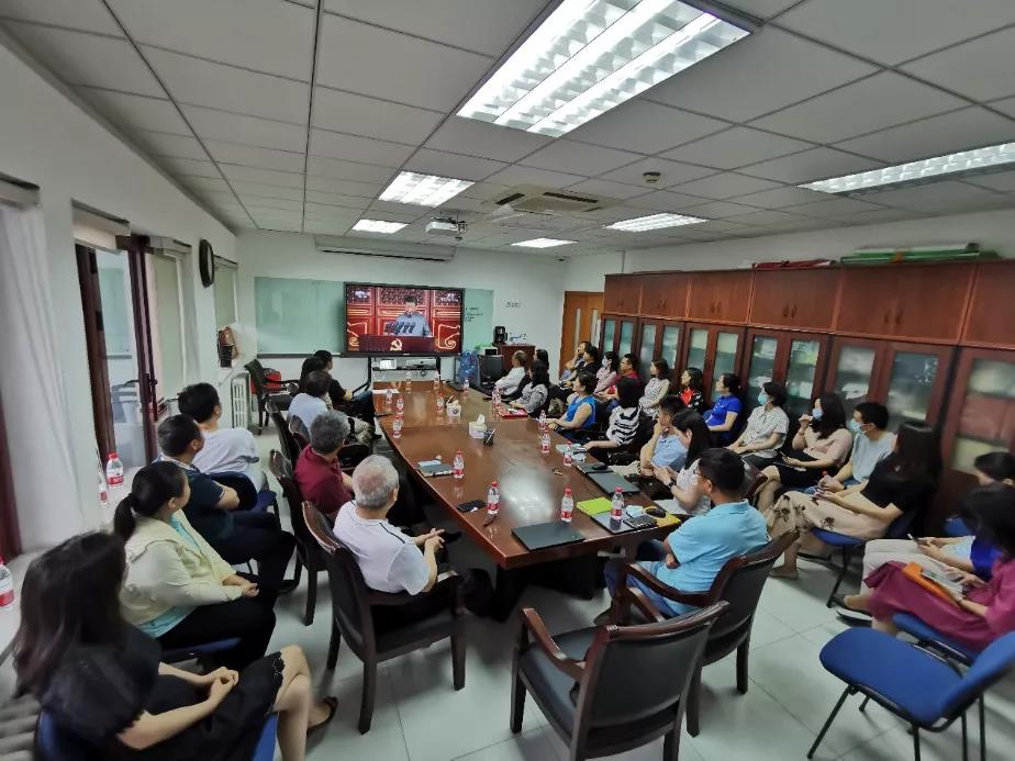 上午8时,全体人员集体收看庆祝中国共产党成立100周年大会,认真聆听习近平总书记发表的重要讲话。庆祝大会后,研究生院老师热烈交流了对习总书记重要讲话的学习心得。