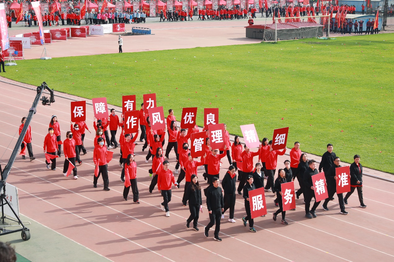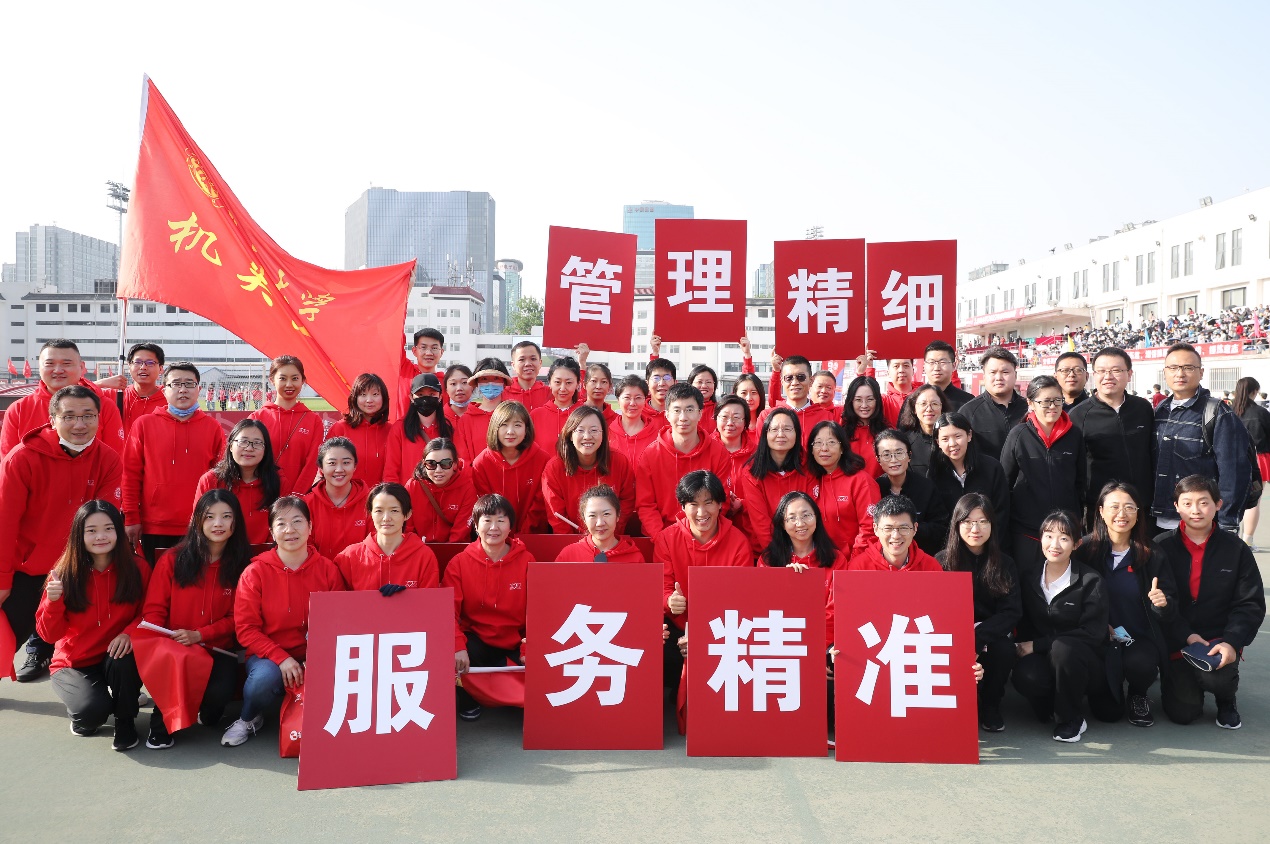 入场式上,红旗烈烈,来自机关30个单位的500余名老师“整装待发”,他们的步伐矫健,他们的着装整洁,他们的口号嘹亮,他们的精神抖擞。“服务精准,管理精细,作风优良,保障有力”,主席台前的口号,喊出了学校机关服务师生的初心与信念。