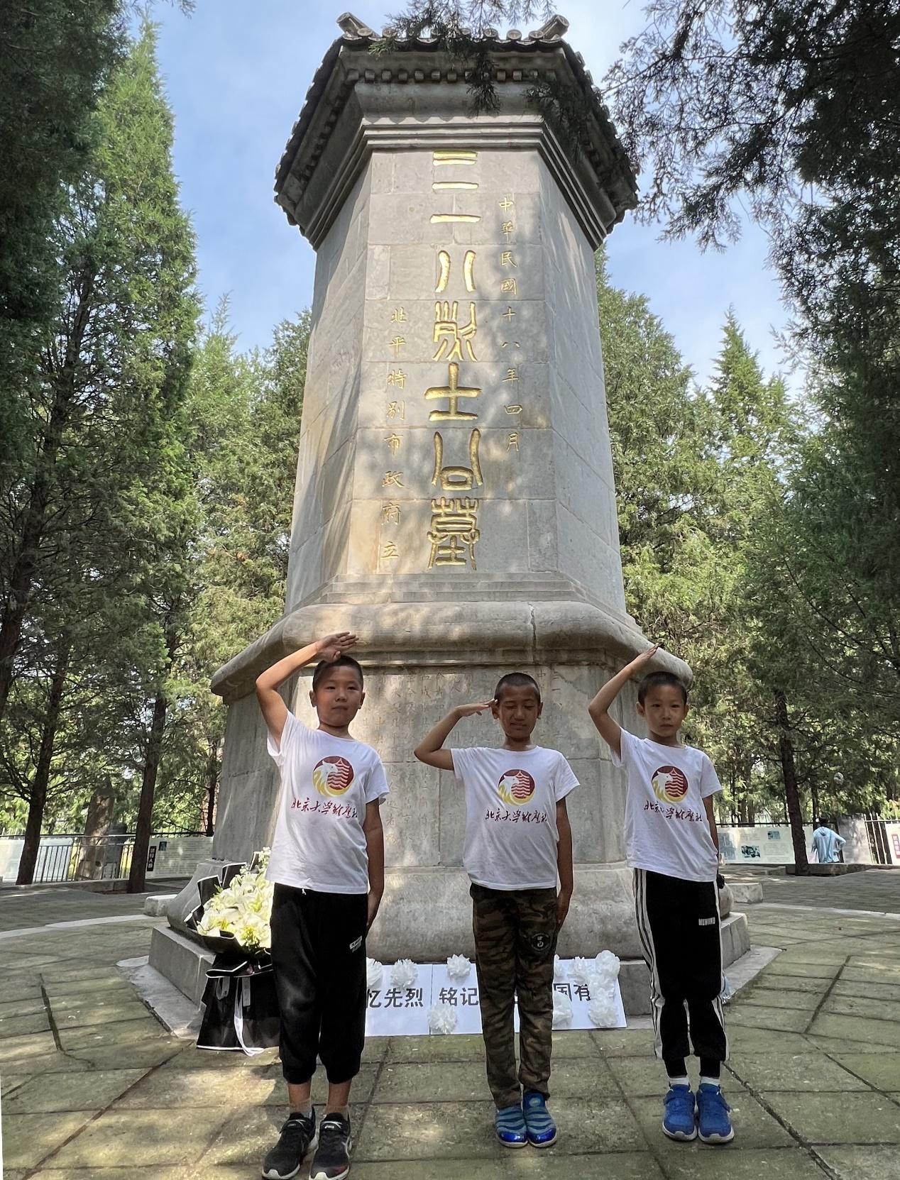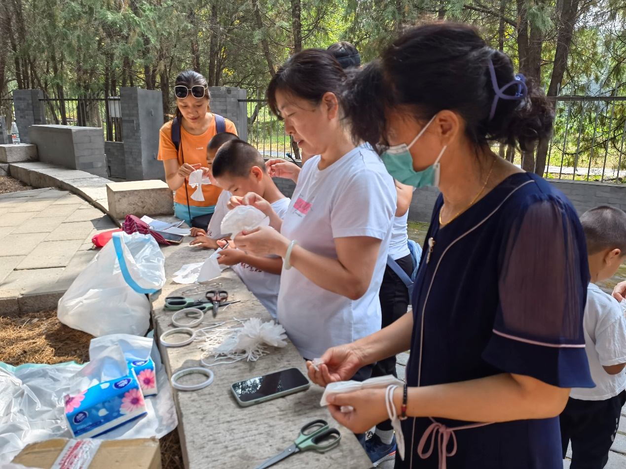 美好生活来之不易!忆往昔,感念前人牺牲奋斗;看今朝,激励吾辈奋勇前行。在终点“三·一八烈士公墓”,机关党委副书记袁红利带领小朋友们一起制作白色的小纸花,并开展“我为烈士献上一朵小纸花”活动,在北大机关的孩子们心中深深播下一颗颗爱国向上的种子,于强体魄的同时培铸爱国情、树立强国志,以期将来用自己的行动实际实现报国行!