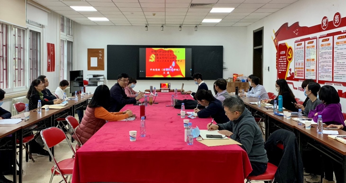 为深入学习贯彻党的二十大精神,切实提升学习质效,推动大会精神在财务部落地生根,11月9日上午,财务部党总支在财务部205会议室召开学习宣传贯彻党的二十大精神专题报告会,特邀中央党校马克思主义学院副教授、马克思主义发展史研究所副所长、中央党校创新工程执行专家、北京大学哲学博士王巍教授作专题理论辅导。会议采用线上和线下相结合的方式举行。