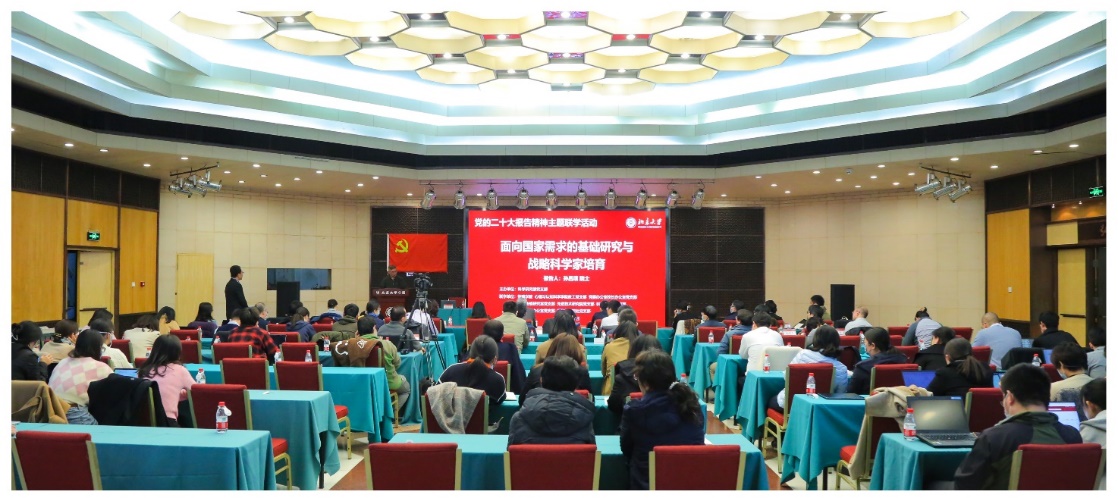 11月3日,科学研究部党支部联合物理学院、心理与认知科学学院、党委办公室校长办公室、政策法规研究室、党委巡视办公室、先进技术研究院、科技开发部、医学部科研处等党支部共同开展“服务国家战略,助力科技自立自强”主题党日活动,邀请著名理论物理学家、中国工程物理研究院研究生院院长、北京大学客座讲席教授、北京大学物理学科卓越人才培养计划科学指导委员会主任孙昌璞院士作“面向国家需求的基础研究与战略科学家培育”主题报告。
