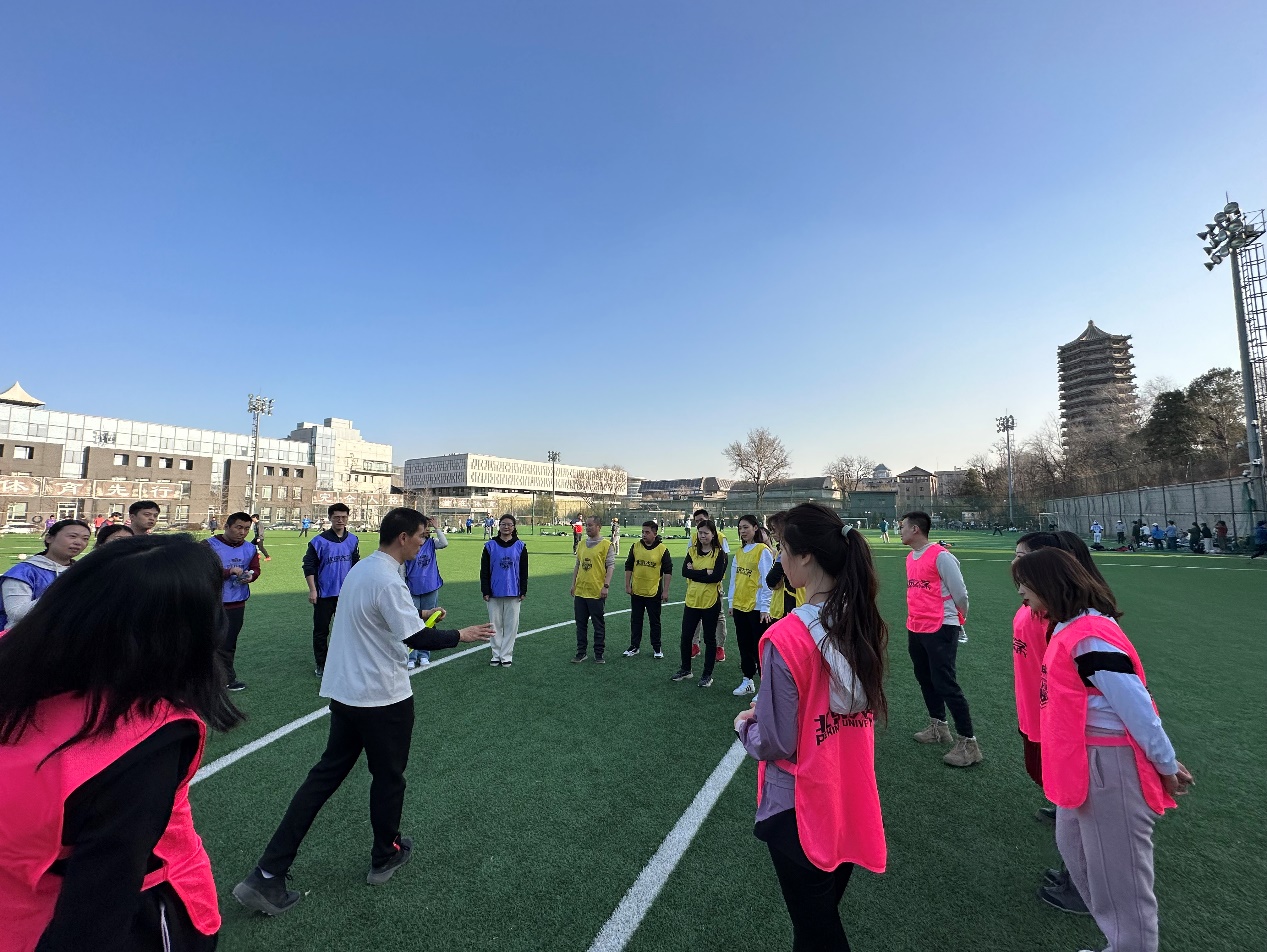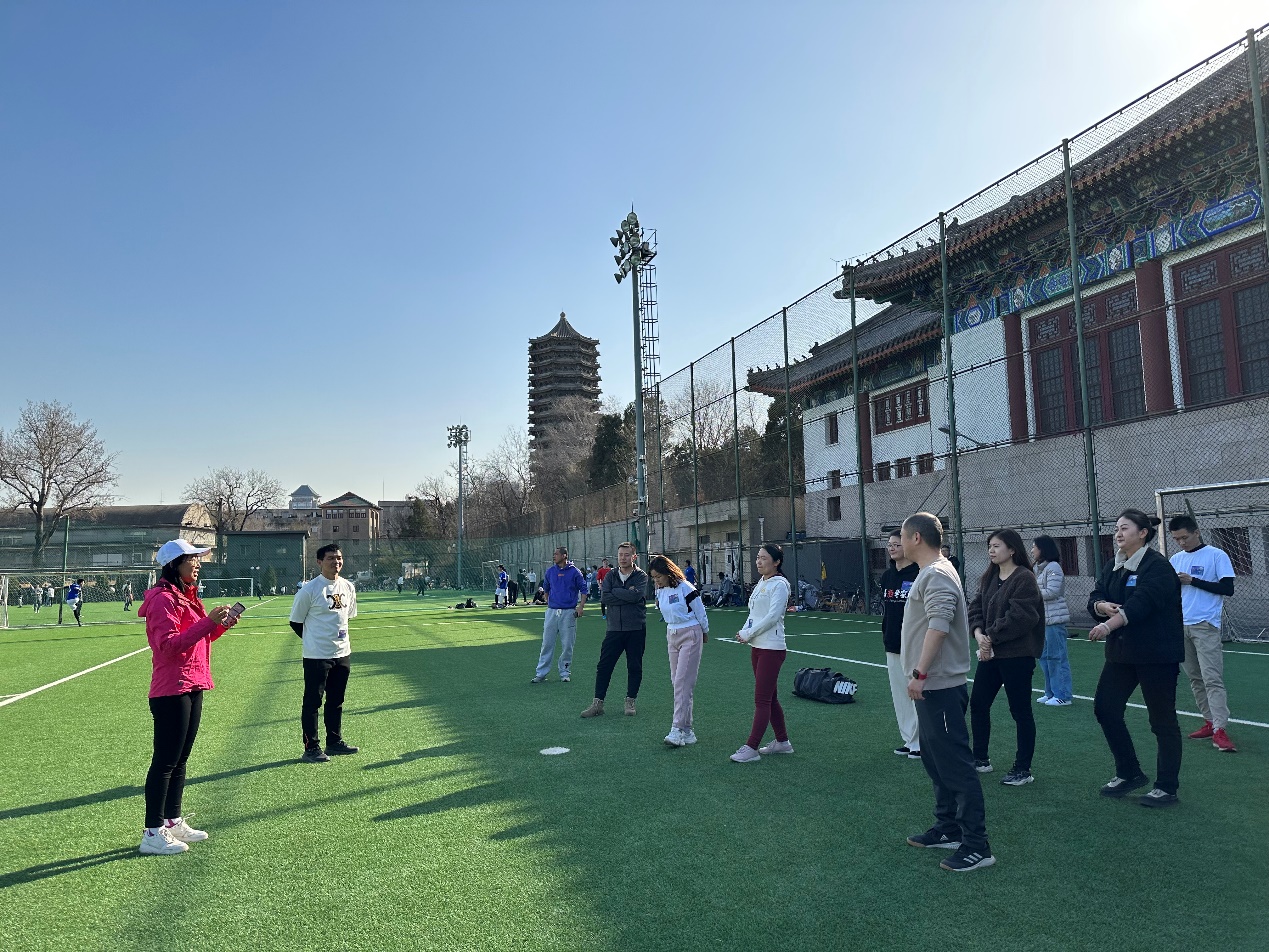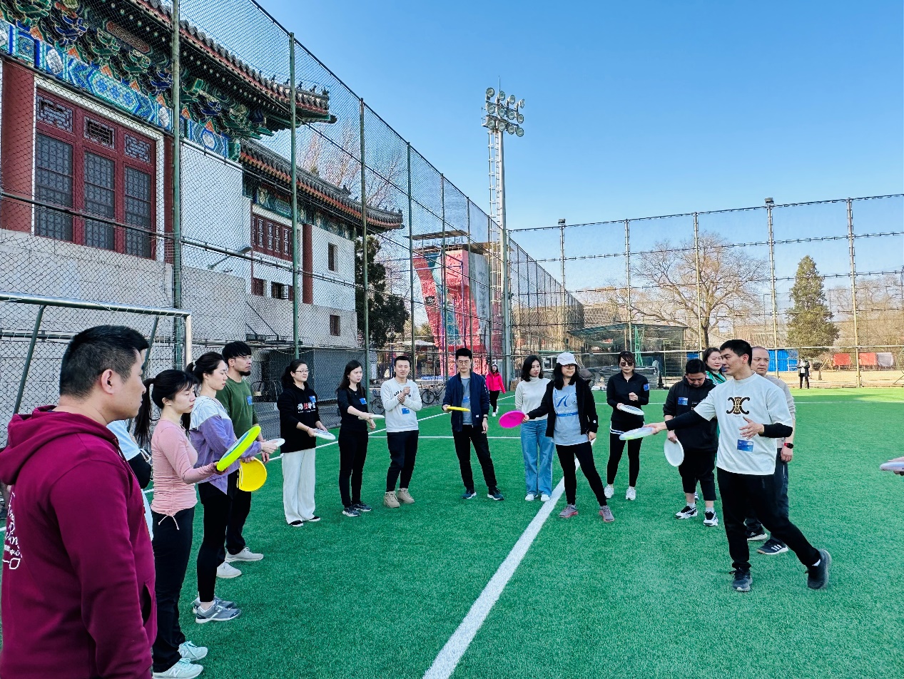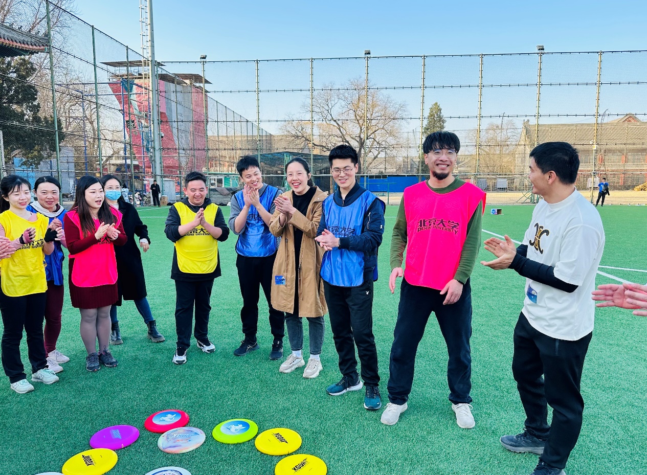 紧接着,刘博细致讲解了飞盘比赛的规则,并根据男女比例,将参加活动的老师分为三组,一对一展开团队比赛。