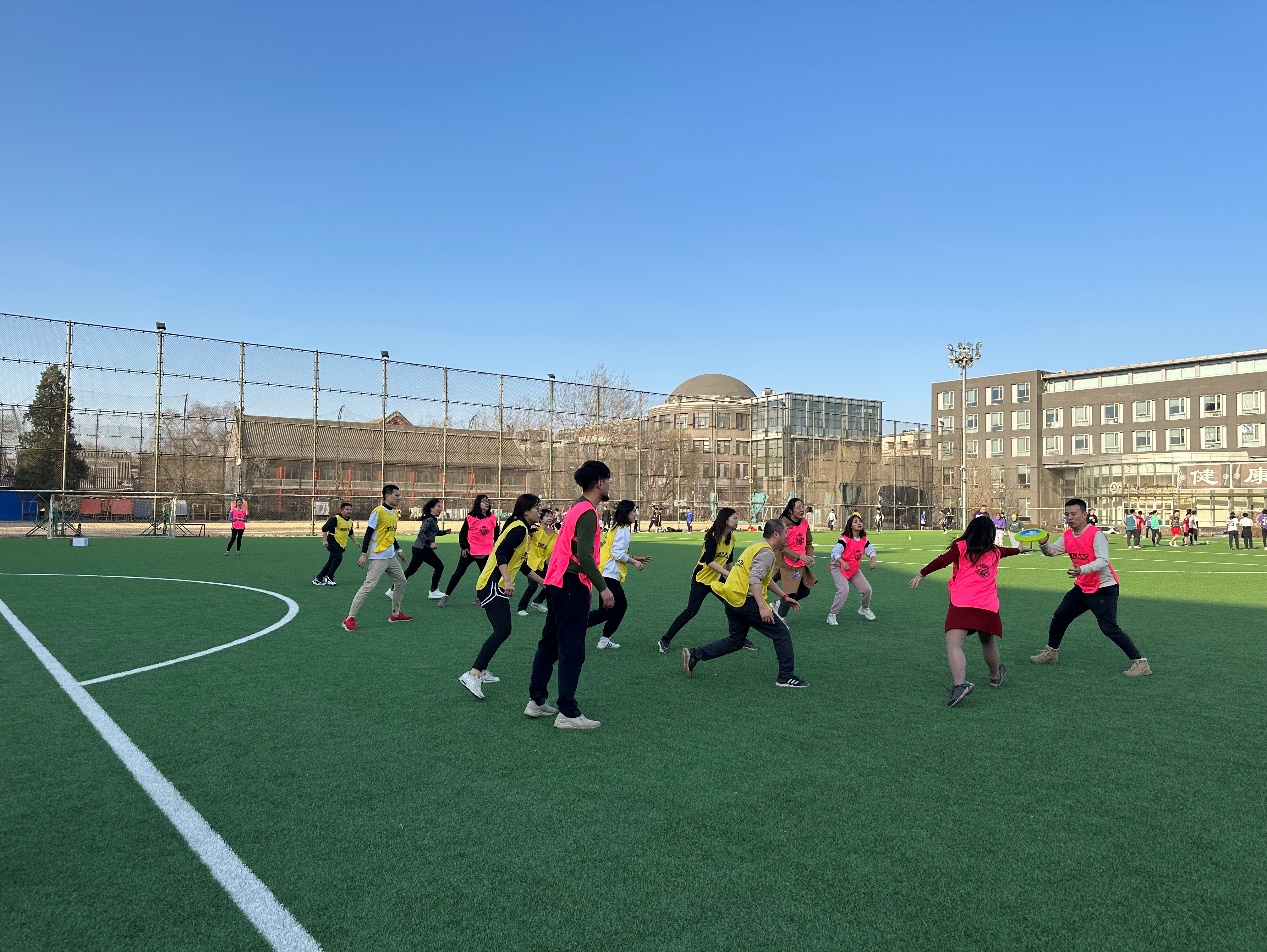 3月3日下午,由机关党委、机关工会、机关团总支主办的“与你结缘”单身联谊系列活动之飞盘体验在第一体育场举行。机关党委书记刘旭东、机关工会主席田越、机关工会文体委员罗俊到场支持,机关团总支副书记曹璐、体育教研部刘博两位老师带领全校各单位30余位单身教职工参加了此次活动。活动由刘博主持并担任教练。