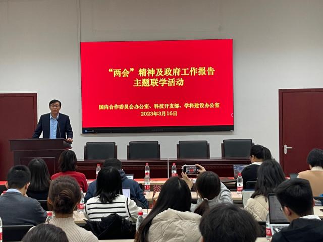 联学活动以听取报告和提问交流形式进行。康涛表示,党的二十大报告指出,高质量发展是全面建设社会主义现代化国家的首要任务,高质量发展根本在于经济的活力、创新力和竞争力,经济的高质量发展离不开创新驱动,服务创新型国家建设正是三部门的工作重点。本次联学活动以二十大精神为指引,结合两会经济热点,聚焦经济高质量发展,希望为三部门实际工作提供理论指导。