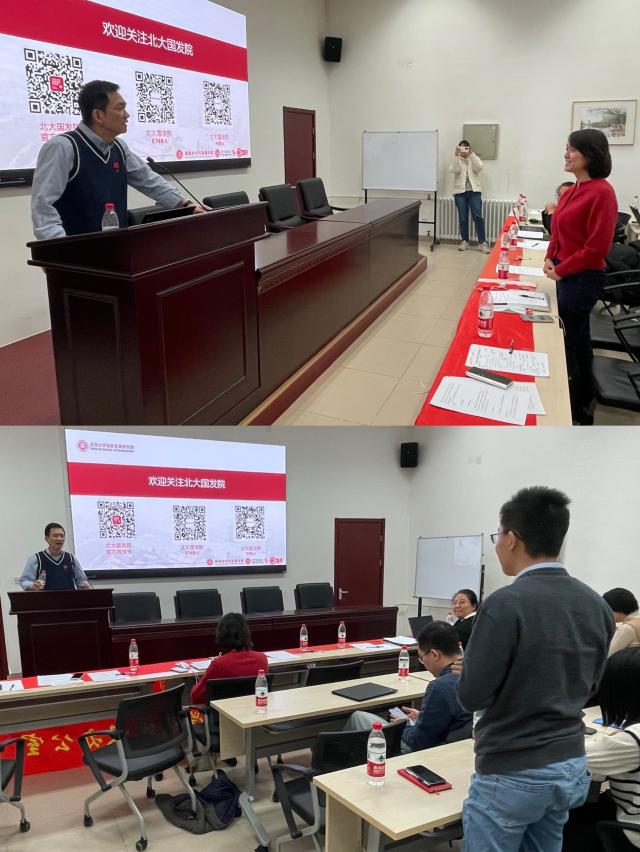 在提问环节,科技开发部党支部书记郭蕾、国内合作委员会办公室党支部刘爽健、人文学部办公室党支部书记魏巍分别就北大同首都产学研合作、国内资本市场与房地产市场表现、地方城投债现状等问题与姚洋交流。姚洋对各具体问题作一一解答,并指出:未来几年将是中国经济的重要战略发展期,我们应当树立信心、戮力创新、埋头苦干,努力为经济崛起和民族复兴贡献力量。