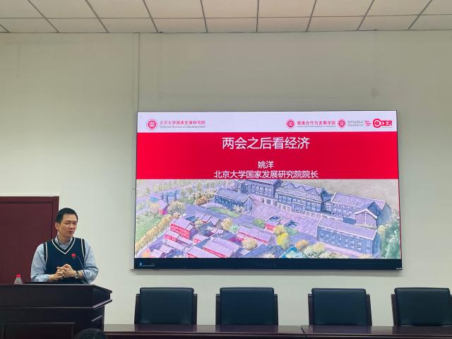 国内合作委员会办公室特别邀请国家发展研究院院长姚洋教授作“‘两会’之后看经济”主题讲座。姚洋从中国经济增长潜力、脱钩论和民营企业地位问题三个角度讨论其对未来中国经济走向的看法。他认为,中国经济尽管在短期内存在内需不足等问题,但是从长期看仍有较大的增长潜力。今年,在经济复苏的大背景下,伴随三年疫情中超额储蓄的逐渐释放和房地产止跌,中国经济将进入继本世纪头十年之后的新增长周期,以新能源、AI等为代表的创新成果将成为经济发展的主要动力。就当前盛行的“脱钩论”,他指出,疫情以来,中国保持制造业优势和强势出口态势,进一步吸收外资,推动核心技术和高科技行业的发展。就整体看,当前美国对华政策的转向更多是其短期情绪反应的表现,在长远的角度,我们仍能从具体事务着手,逐步推动中美竞争规则的建立。最后,就民营企业地位问题,他强调,我们应当尊重改革开放时期民营经济大发展的成功经验,努力促进民营企业发展,在金融借贷、政府采购的过程中推动民企和国企的公平竞争,创造适合民营企业发展的良好市场环境。