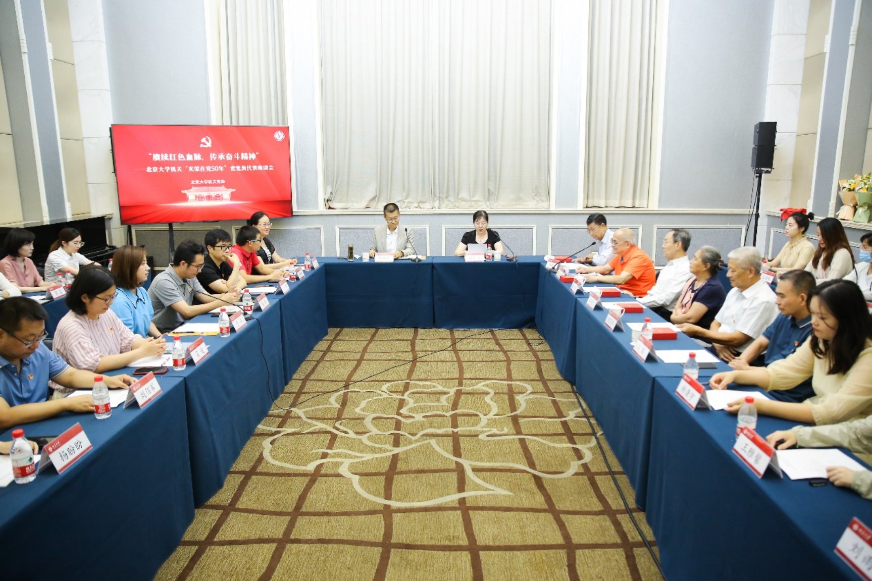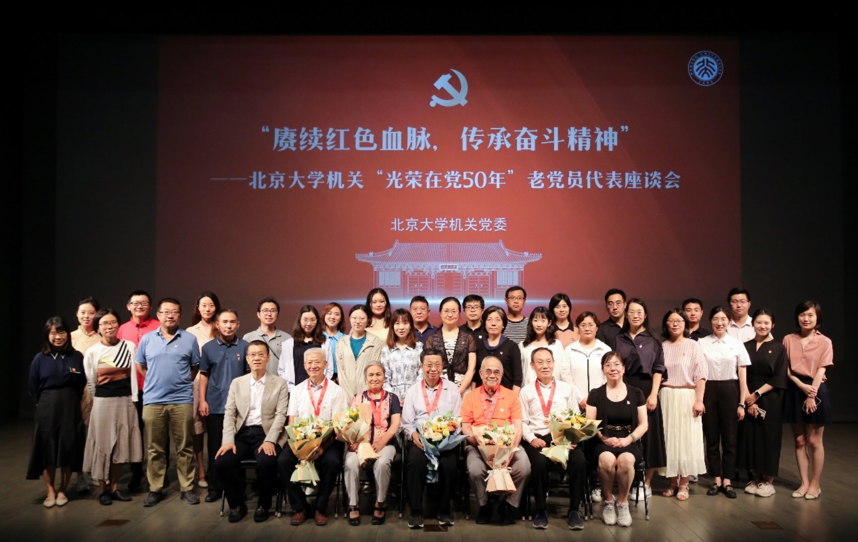 6月30日下午,“赓续红色血脉,传承奋斗精神”——北京大学机关“光荣在党50年”老党员代表座谈会在百周年纪念讲堂202会议室举行。机关获颁“光荣在党50年”纪念章的老党员代表,机关党委书记刘旭东、党委副书记袁红利,机关党群团组织负责人、机关青年代表等40余人参加。座谈会由袁红利主持。