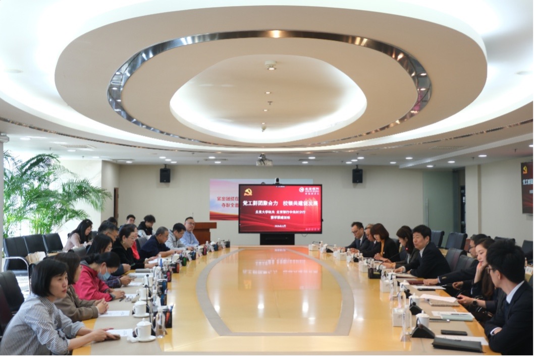 双方还就深化合作、加强作风建设、提高管理服务水平、完善数智化建设、优化职工之家建设等进行座谈交流。北京银行中关村分行党委副书记李有存系统介绍了分行业务发展情况,表示将继续加强与北大机关合作,持续推动银校资源对接,探索合作新领域,展现银行社会担当,促进我国金融高质量发展。北大机关党委书记刘旭东表示,此次活动通过党建纽带实现了双向赋能,一方面通过学习北京银行标准化服务的先进做法,提升北大机关工作人员的服务意识和服务水平,另一方面为校银资源共享、协同创新搭建了桥梁纽带。机关党委副书记田越,机关党委副处级干部袁红利,机关党委委员迟春霞,机关工会主席刘卉、副主席蒋锴、文体委员曹璐,财务部副部长孟凯、人事部副部长余跃等也都结合实际工作积极建言,学生代表郝晶还就银发经济进行了提问,双方就银行服务和反诈宣传进社区进行了沟通交流,现场气氛热烈。大家对北京银行此前给予北大机关的各项支持表示感谢,纷纷表示此行深受启发,会把北京银行的好经验好做法带回到本职工作中,推动校园发展建设,对北大机关打造温馨温暖的职工之家以及北京银行为北大提供更多的支持合作表达了期待。