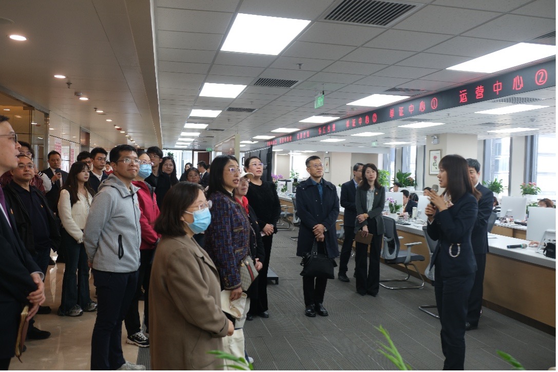 在北京银行中关村分行机构业务部总经理刘超的引导下,北京大学机关一行参观了银行一站式服务大厅。工作人员详细介绍了报账中心、外汇合规、运营中心、档案中心等职能模块的运行机制,现场演示了电子运营系统的高效服务流程,展现了银行在业务办理中“系统化、数字化、智能化”的实践成果。用印中心规范的公章管理流程和严谨的操作标准,进一步体现了银行专业化、精细化的服务理念,将制度规范与技术手段相融合的创新模式为高校行政工作提供了有益参考。