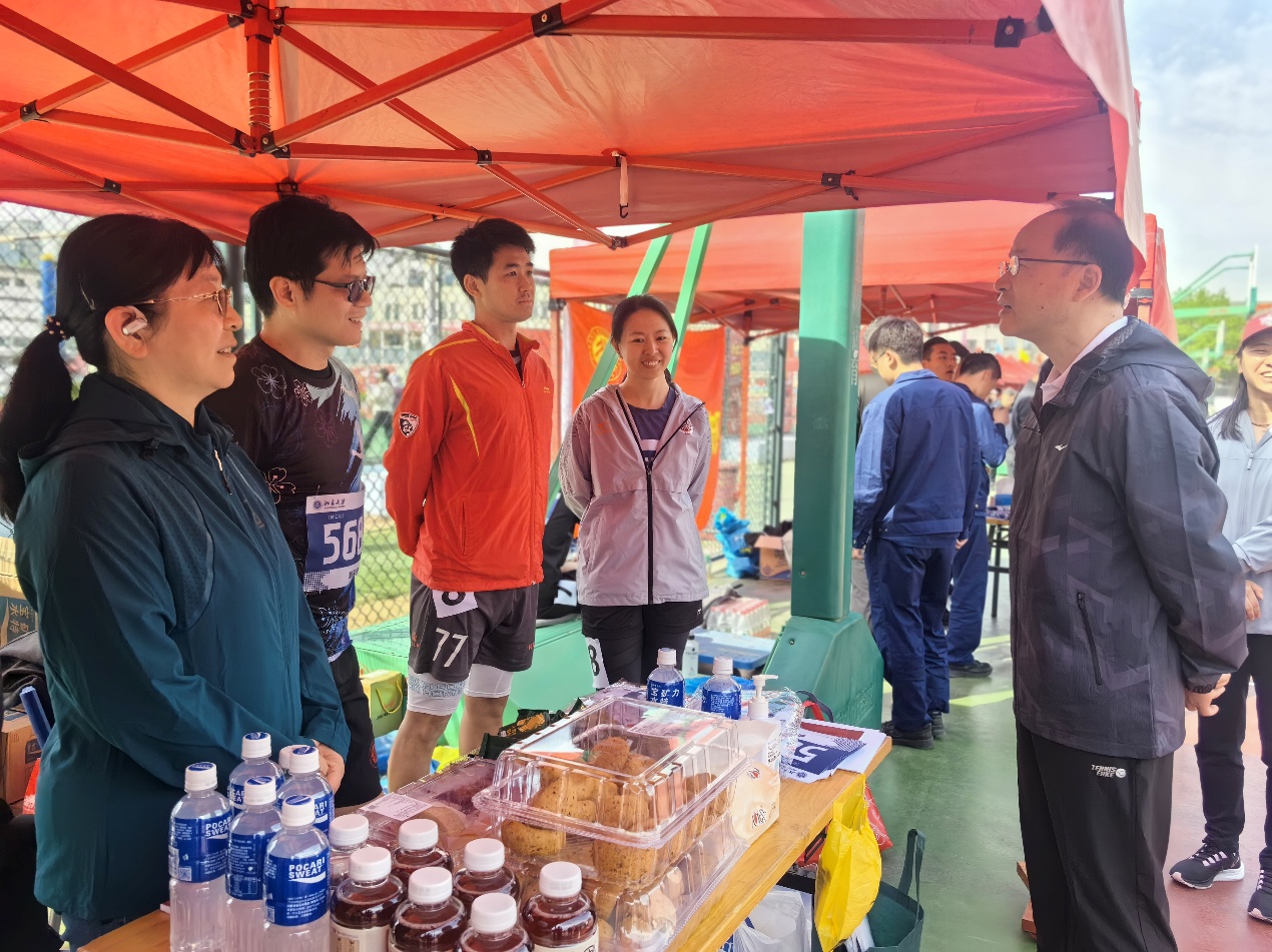 4月25日上午,何光彩书记亲临现场慰问鼓励机关参赛队员,党委组织部吴艳红老师两次带队到现场加油助威,继续教育学院李本纲老师亲自部署、带头参赛,学院成绩因此大幅跃升,机关党委刘旭东老师也到机关服务点鼓励服务队员。机关党委袁红利老师、机关工会副主席蒋锴老师两天一直坚守在机关服务站点。这些细节不仅体现了机关工会对每一位成员的关怀体贴,更彰显了机关上下团结一心的强大力量。