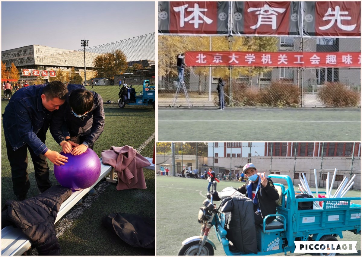 为做好常态化疫情防控,避免人员聚集,今年的趣味运动会从以往举办地邱德拔体育馆“搬”到第一体育场足球场举行。户外场地视野开阔,“完全人格、首在体育”“健康校园、体育先行”的大幅标语映入眼帘,不远处还可眺望博雅塔的英姿。机关工会委员会的志愿者们早早来到现场布置。