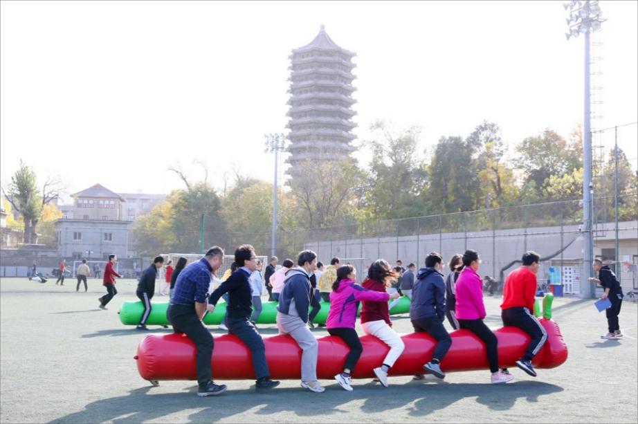 机关趣味运动会作为机关工会每学期组织的固定活动,早已融入机关老师的“燕园生活”,成为机关文化的重要组成,为提升机关凝聚力、增进机关各部门交流发挥了重要作用。每届趣味运动会不断设计并推出对团队协作配合能力要求较高、趣味性更强的新项目,提升运动会挑战性的同时,也为比赛带来悬念。近年来,趣味运动会吸引愈来愈多机关老师报名参加,一些部门的参赛队伍甚至扩充为两支。趣味运动会通过营造紧张而活泼的氛围,成为机关老师释放心情、迸发活力、展示技能的竞技场。