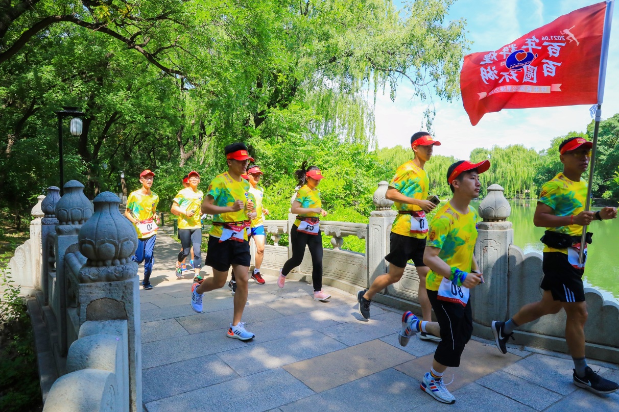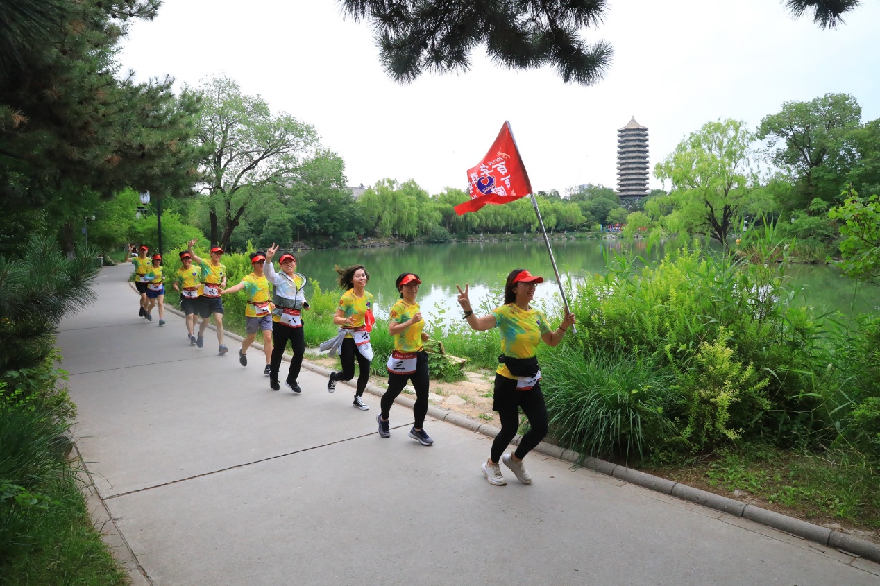 上午7:01,环湖接力正式开跑。师生们被分成33组,每组10人,在领跑员的带领下,高举主题旗帜,环湖三圈。他们迈开腿,摆开臂,大步前行,一路跑过高耸巍峨的博雅塔,跑过雄浑典雅的湖畔红楼,跑过庄重肃穆的斯诺墓。