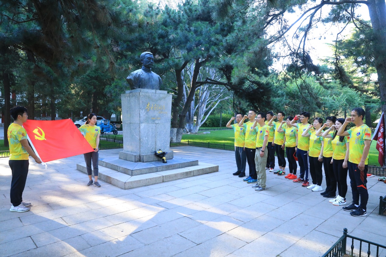 6日一早,在熹微的晨光中,机关党委书记刘旭东、城市与环境学院党委书记刘耕年、生命科学学院党委书记刘德英等师生代表会聚在俄文楼李大钊像前。面对鲜红的党旗,大家举起右拳,重温入党誓词,并环湖一圈领跑,拉开了活动的序幕。