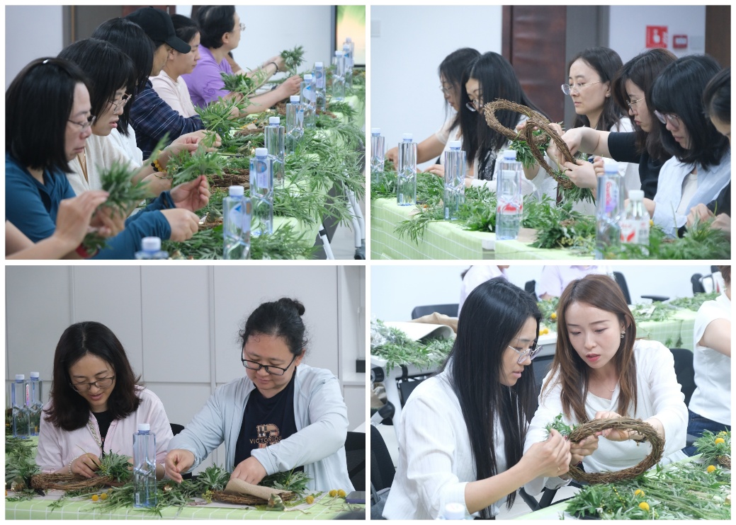 制作结束后,老师们都开心地互相展示着自己的艾草花环,并合影留念。大家表示,此次活动极具创意,不但体验了有趣的艾草花环制作过程,更增进了自己对端午节传统习俗的了解。