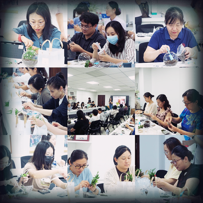 制作好的每一盆盆栽,都是一座极具个性表达的微型花园,充分彰显着大家天马行空的想象力:或简约大方,或野趣横生,或天真烂漫……方寸玻璃内,积蓄参天之力;片片青绿间,尽显师者柔情。大家纷纷与自己的盆栽作品合影留念,而这些盆栽作品,将被教职工们带往各自的办公室,成为一道道独特的风景线。