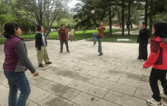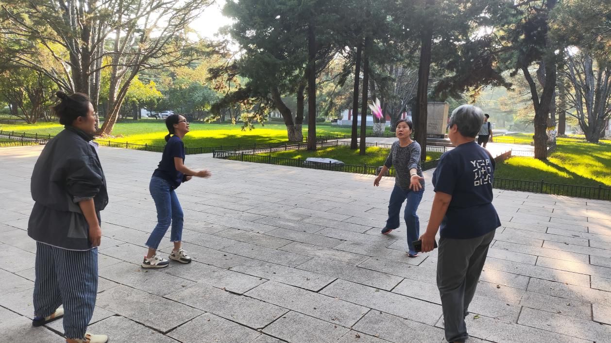 虽然俄文楼前活动空间有限,但教职工们集思广益,充分利用现有场地条件,开展了形式多样、灵活有趣的健身项目。踢键子、跳绳、做操……大家各展所长,都展现出了自己傍身多年的“绝活”。毽子在空中翻飞,跳绳划出轻快的弧线,体操动作整齐舒展,现场欢笑声、喝彩声此起彼伏,不绝于耳。同事们三三两两组合,或比拼技艺,或相互指导,或结伴练习,在运动中交流情感,在快乐中因此拉近距离。虽然空间有限,但教职工们的参与热情却没有丝毫消减,纷纷释放出了无限的生机与活力。因地制宜的活动安排不仅达到了锻炼身体的目的,更提升了团队凝聚力。