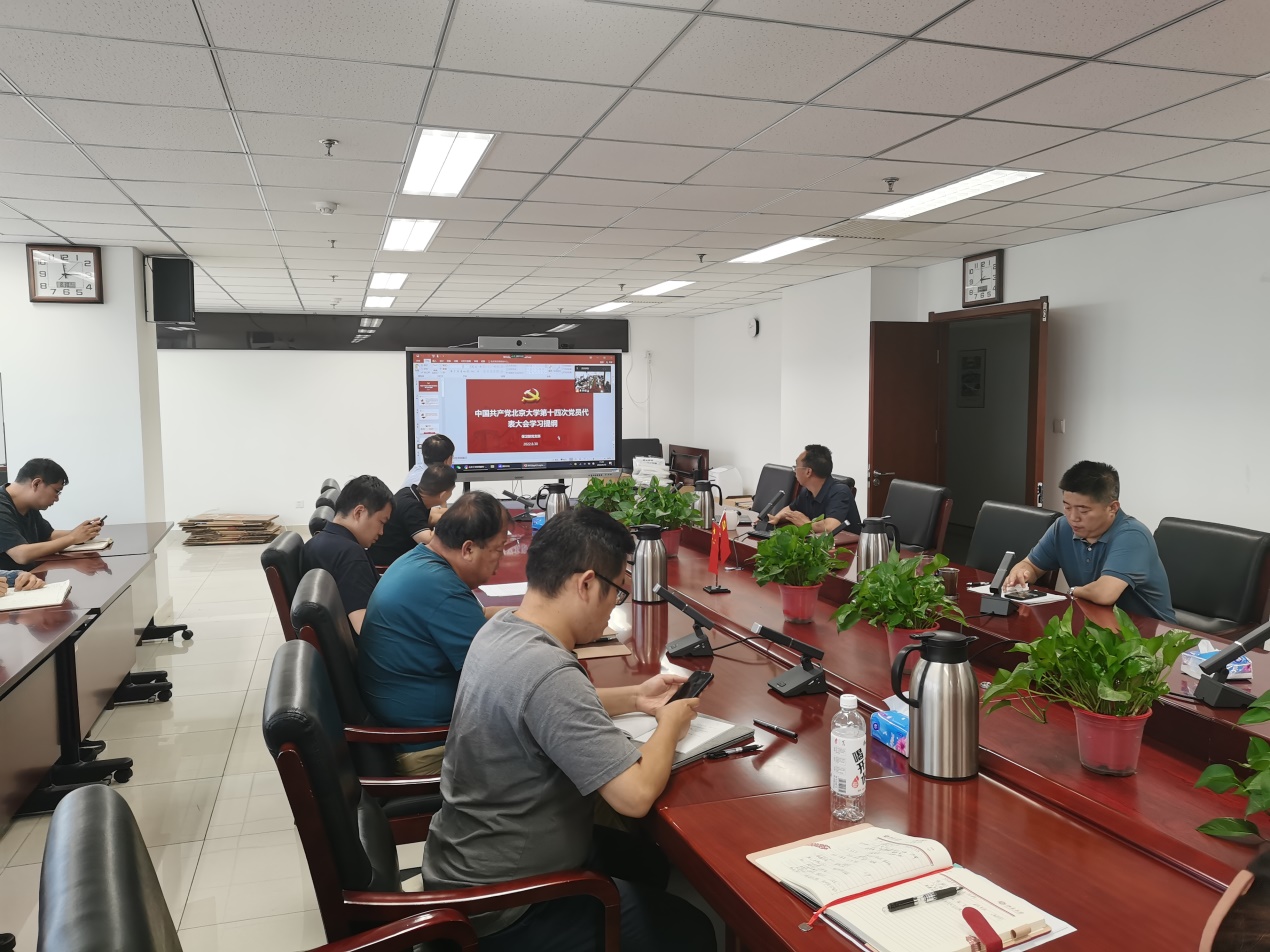 2022年8月30日下午,保卫部党支部组织学习北京大学第十四次党代会精神。保卫部全体党员干部参加会议,会议由保卫部党支部副书记、副部长廖万平主持。