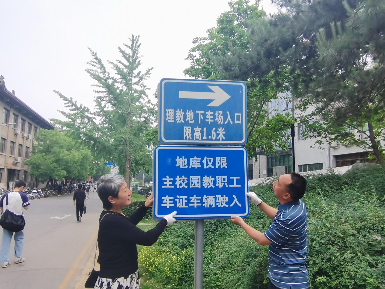 座谈会结束后,与会人员分为三组,分别前往成府园区、勺园、理科楼群三个区域进行实地调研,对照前期梳理的问题清单,对废旧自行车架、过时机动车引导牌、监控设备被遮挡等问题进行整改。